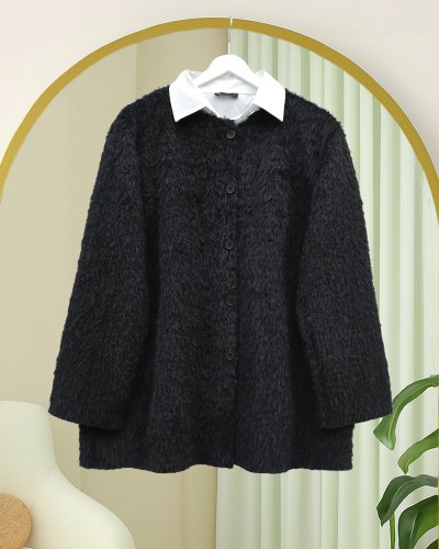 Atkı Detaylı Önü Düğmeli Sakallı Ceket Siyah