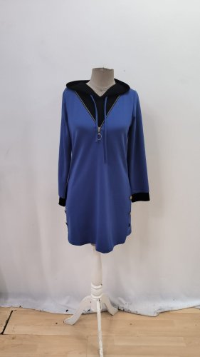 • Kadın uzun kollu kapşonlu önden fermuarlı düğmeli mini iki iplik elbise